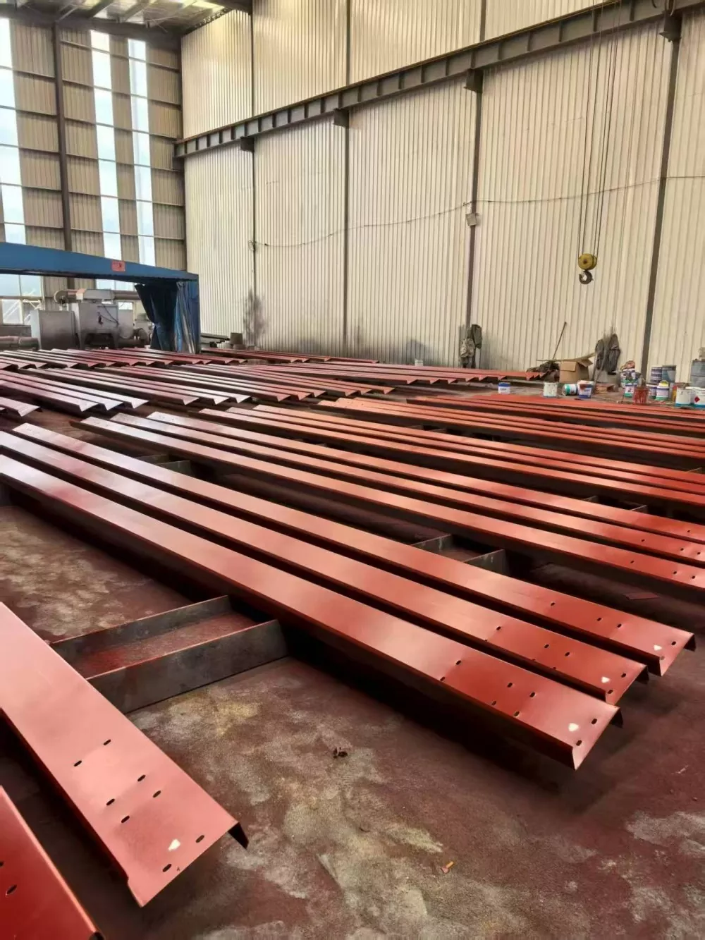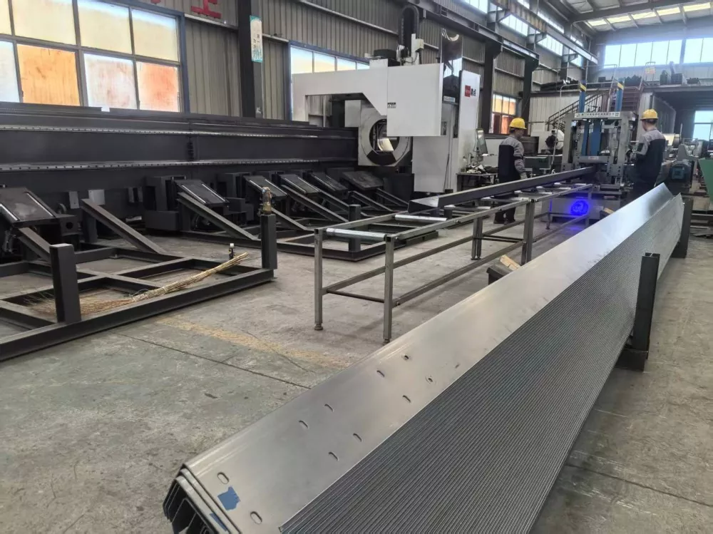 2. Poinçonnage : équipé d'une unité de poinçonnage CNC, il prend en charge le poinçonnage multi-angle des âmes et des brides, avec une tolérance de diamètre de trou de ± 0,2 mm et une précision d'espacement des trous de ± 0,3 mm. Il peut également produire simultanément des trous conformes aux modèles de connexion en acier à section C de la norme américaine (tels que les trous d'adaptateur Simpson Strong-Tie).
